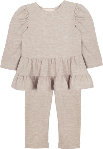 This two-piece outfit features a charming long sleeve top with a two tier skirt and the matching bottoms are perfect for everyday wear.