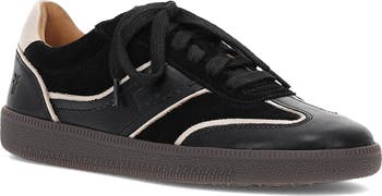 An embossed logo subtly stamps the sidewall of a sporty sneaker designed with a T-toe and slip-resistant sole.