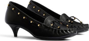 Debuting on Khaite's spring '26 runway, this polished take on a boat shoe is reimagined as a pump detailed with gleaming hardware and lifted on a sculptural heel.