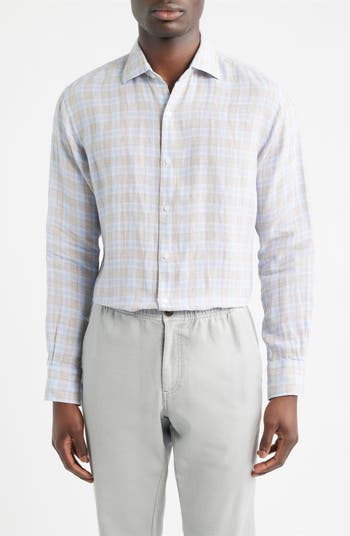 Subtly slubbed linen both elevates and relaxes a sport shirt that balances crisp, classic tailoring with softly dappled coloring. Wear it smooth, rumpled, tucked or untucked to change up your look depending on the weather, the occasion or your mood.