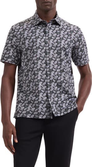 Scattered leaves invite cooling breezes in a shirt cut from breathable, eight-way-stretch OoohCotton that resists wrinkles to keep you polished and comfortable. The smooth double-mercerized knit fabric dries quickly for moisture-managing softness and consistent body temperature.