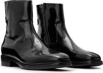Sleek, polished, and absolutely impeccable, this almond-toe boot subtly branded at the zipper makes a statement without being showy about it.
