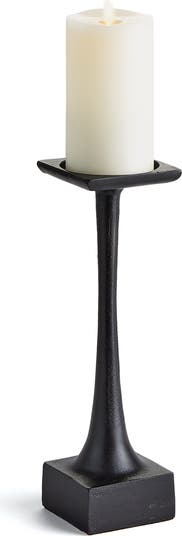 - With a weighted base and tall slender body, this candle stand is a smart design. With classic lines, it plays well in the transitional as well as traditional space. Add your favorite pillar candle for a warm glow.