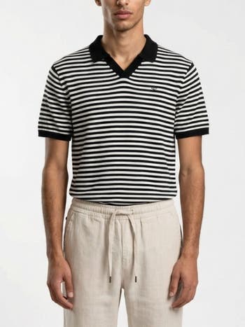 A soft knit polo shaped for a clean silhouette, breathable comfort for weekends or every day, subtle stripe details that signal quiet confidence.