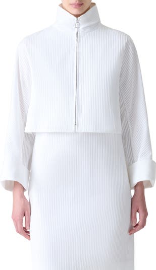 Precise micropleating stripes this cropped cotton-voile jacket flared by a dramatic inverted back pleat.