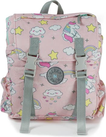 Soft, warm and ready for adventures, this two-in-one backpack unfolds into a sleeping bag perfect for camping, travel and sleepovers with friends. It's temperature-rated to 50º Fahrenheit so it's great for cooler weather, and it includes plenty of handy pockets for favorite toys, books and clothing.