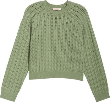 The beginning and end of sweater season are two perfect times to pull out a cotton crewneck defined by airy pointelle stitchwork.