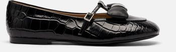 Mina Mary Janes pair leather with pillowy calfskin bows and delicate T-strap buckles for a polished, nostalgic look. An adjustable buckle strap, memory foam padded insole and full calf leather lining provide a cushioned, foot-conforming fit in a standard B width. Finished with a pointed toe and durable rubber sole, these flats balance elegance and all-day comfort.
