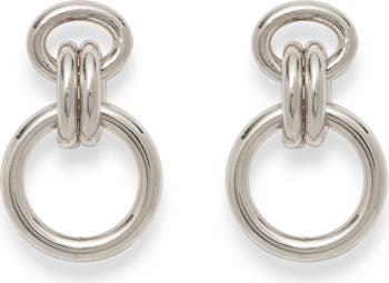 Double rings link oval and round hoops, creating a symphony of circular geometry with these statement drop earring.