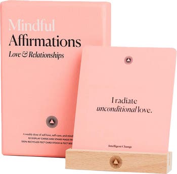Achieve the ideal mindset for inviting love into your life with this transformational set of affirmation cards that teaches you to redefine the way you approach your relationship to yourself and others. The set is complete with a beechwood stand that perfectly fits the card of your choice.