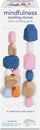 AMBASSADOR GAMES: MINDFUL LIVING - STACKING STONES TOWER BUILDING GAME - Mindfulness can help you reduce stress and find inner peace within a busy world. This set includes 38 quality wood stones in multiple colors, and includes several ways to play. Use the power of concentration and focus to create your structure. Using one stone at a time slowly and thoughtfully stack one on top of another to create a tower. How high can you build it before it tumbles? Reflect and learn what works and what doesn’t work. When we slow down, take our time, and reflect on our intentions and actions, we can make a great impact in the world! Both kids & adults will engage in hours of fun play with this challenging tower building game that will help develop their concentration skills. INCLUDES: 38 wood stones, 45 challenge cards, and instructions. 1+ Players for kids ages 3 and up.