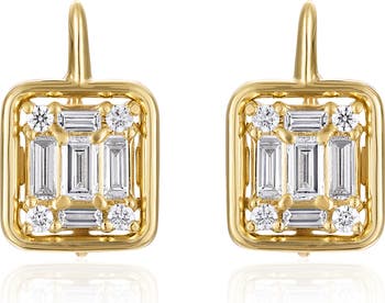 Brilliant diamonds framed by 18-karat gold are the centerpieces of these glistening drop earrings.