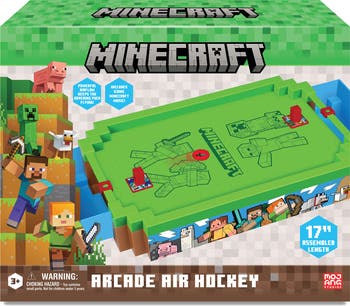 MINECRAFT ARCADE: AIR HOCKEY (CORE SERIES) - OVERWORLD - Bring the thrills and excitement of the arcade home with Minecraft Arcade: Air Hockey (Core Series) – Overworld Edition! A longtime arcade favorite, air hockey delivers fast, competitive fun as the puck glides and rebounds across the surface at high speeds. Now, that same energy is ready for play in a compact, affordable size—perfect for Minecraft fans. Power on the table to activate airflow and watch the puck hover smoothly just like in the arcade. Challenge a friend and aim for the winning shot—firing straight at the goal or banking off the walls to outsmart your opponent. Featuring an Overworld-inspired design and fan-favorite Minecraft characters, every match feels like a spirited game inside the blocky universe. With two customizable pushers and 14 interchangeable pusher covers, players can personalize each matchup with their favorite Minecraft characters. Track the action easily with the built-in score bar as you race to seven points to claim victory. Compact, cost-effective, and full of arcade flair, this Core Series game offers classic air hockey fun at an accessible price—ideal for smaller spaces, apartments, and shared play. FEATURE HIGHLIGHTS: Iconic Minecraft – Overworld themed music. Muted-mode gameplay available. Easily swap between 14 pusher covers. Play with your favorite Minecraft characters. Powerful airflow keeps the puck hovering. Includes 2 customizable pushers. High-speed arcade-style gameplay. Features Steve, Alex, Creeper & more. Explore the worlds of Minecraft — Overworld version. Track every goal with the built-in score bar. First player to reach 7 points wins! ADDITIONAL DETAILS: Compact, cost-effective design with classic gameplay. Offers arcade fun at an accessible price point. Perfect for small spaces, including apartments. Pusher covers let kids personalize gameplay & swap characters. Dimensions: 16.5" (L) × 8.9" (W) × 3.1" (H).