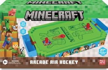 MINECRAFT ARCADE: AIR HOCKEY (PREMIUM SERIES) - OVERWORLD - Bring the thrills and excitement of the arcade home with Minecraft Arcade: Air Hockey (Premium Series) – Overworld Edition! A longtime arcade favorite, air hockey delivers fast, competitive fun as the puck glides and rebounds across the surface at high speeds. Now, that same energy is ready for play in a larger premium size—perfect for Minecraft fans. Power on the table to activate airflow and watch the puck hover smoothly just like in the arcade. Challenge a friend and aim for the winning shot—firing straight at the goal or banking off the walls to outsmart your opponent. Featuring an Overworld-inspired design and fan-favorite Minecraft characters, every match feels like a spirited game inside the blocky universe. With two customizable pushers and interchangeable pusher covers, players can personalize each matchup with their favorite Minecraft characters. The spacious playfield provides enhanced gameplay, while classic Minecraft music adds to the excitement as you battle for victory. Designed for great play value and a premium feel, this edition offers immersive arcade fun that’s perfectly sized for at-home play. FEATURE HIGHLIGHTS: Iconic Minecraft – Overworld-themed music. Easily swap pusher covers. Play with your favorite Minecraft characters. Powerful airflow keeps the puck hovering. Includes 2 customizable pushers. High-speed arcade-style gameplay. Features Steve, Alex, Creeper & more. Explore the worlds of Minecraft — Overworld version. ADDITIONAL DETAILS: Larger premium size for enhanced gameplay. Offers arcade fun with premium play value. Ideal for recreation rooms, playrooms & family spaces. Pusher covers let kids personalize gameplay & swap characters. Dimensions: 20.7" (L) × 10.9" (W) × 3.1" (H).