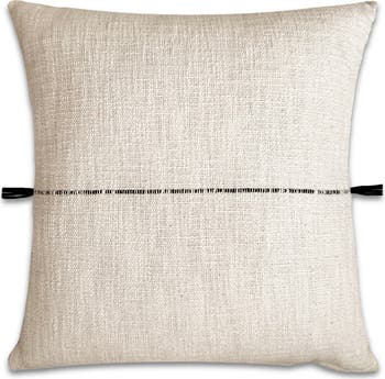 Our minerva pillow in super soft slub cotton is a classic with just the right amount of interest. Tiny peekaboo tassels from a textural stripe emerge from each side. Detail is on both sides. Handwoven in India and finished with our signature poppy red zipper with brass logo pull. Pillows are the best way to add dimension, texture, and color to your space instantly. This pillow is the perfect subtle pop of color to add to your living room, bedroom, or nursery.