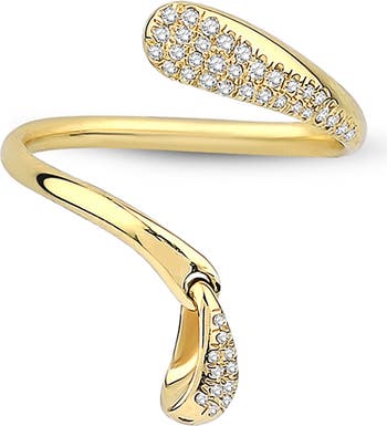 Fluid shine is further enhanced by the sparkling pavé diamonds on this stunning ring that's handcrafted from 18-karat gold.