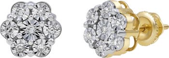 Mini 10K Yellow Gold Diamond Cluster Earrings - 0.08ct.