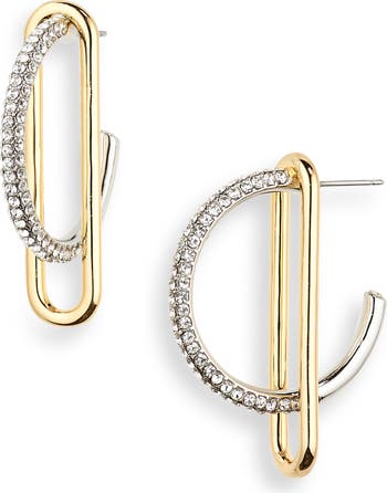 Polished two-tone earrings offer contemporary appeal with shimmery pavé cubic zirconia hoops bisecting elongated oval drops.