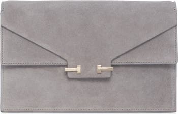 Gleaming double-T hardware on the layered flap adds an elegantly simple signature to this scaled-down shoulder bag crafted in Italy from calfskin suede. For added versatility, you can remove the adjustable strap and carry the accordioned style as a minimalist clutch.