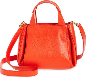 The label's favored trapezoidal silhouette with side gussets defines a scaled-down bag crafted from richly pebbled leather in a head-turning hue. A removable crossbody strap offers an added carrying option.