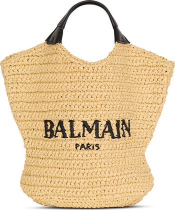 Mini Balmain tote bag in crochet and smooth calfskin leather Soft style Carry in the hand Contrasting leather handles Contrasting, raised Balmain Paris logo woven on the front Dimensions: 20 x 35 x 30��cm Main material: 100% viscose Made in Italy Item: HN1FA089TRAY