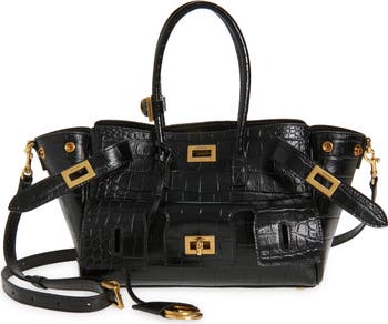 Mini Bel Air Croc Embossed Leather Carry All Tote