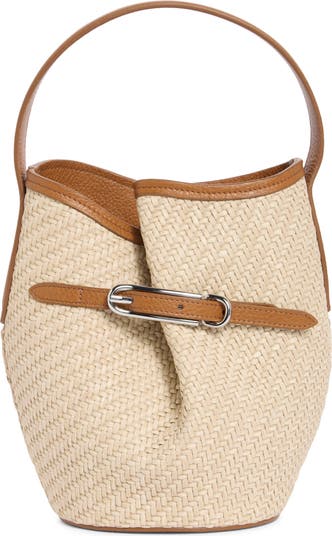 Sculptural and softly structured, this bucket cinches with a slender, diagonal belt that creates graceful curves, making an artful finish for every look.