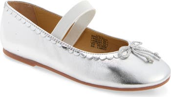 An elastic strap keeps this pretty ballet flat comfortably secure so they move with confidence through school and weekend activities.