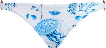 Fashioned from stretch recycled polyamide and elastane, these ocean-print mini bikini bottoms capture the essence of summer. Delicately-engraved imitation tortoiseshell side rings complete the detail.