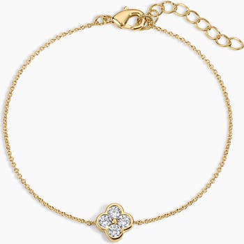 The Mini Camilla Bracelet brings just the right amount of sparkle to your wrist. A CZ-studded clover shines from a slim gold chain that works just as well on its own as it does layered with your favorites.