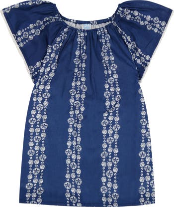 Get ready for some beach fun with the Mini Capucine Girl's Caftan! This boho chic cover up doubles as a playful beach dress, featuring whimsical embroidery, elasticized neck and roomy flutter sleeves. Perfect for a carefree and stylish look.  100% cotton.