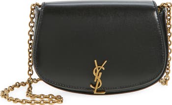 Signature hardware is echoed by a matching chain strap in this smooth leather crossbody bag that makes any ensemble more iconic.
