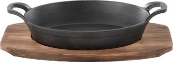 Mini Cast Iron Oval Pan with Wood Tray
