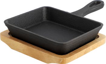 Treat yourself to dessert for one or serve your favorite apps with class in this MegaChef Mini Cast Iron square pan and tray. The mini size of this cast iron is perfect for baking single portions, and serving on the wooden tray straight from the oven. This two piece set is ideal for both a night in for one, and to entertain in style. Designed for exceptional heat retention and even cooking, this mini pan ensures your meals are seared and cooked to perfection. Suitable for stovetop, oven, and even outdoor grilling, this mini pan is perfect for all your culinary adventures.The natural wood tray adds a touch of rustic elegance, making it convenient to serve directly to the table. It also protects surfaces from heat while enhancing your kitchen aesthetic. Ideal for personal servings or gourmet presentations, the square shape makes it easy to create stunning plated dishes that impress. This MegaChef Mini Cast Iron pan and tray is a must-have for anyone who appreciated fine cooking and beautiful presentation!