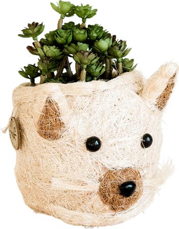 Handwoven by artisans from natural coconut coir, this whimsical cat-shaped planter brings warmth, whimsy and rustic purr-sonality to your home or garden while displaying succulents and small floral arrangements.