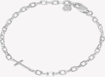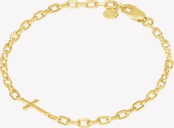 18k generously gold-plated sterling silver cross bracelet seamlessly paired with a mini paperclip style fully adjustable chain. 18.9in (48cm). Convey your faith with our Mini Chain Breaker Bracelet . Inspired by Galatians 5:1. The epitome of elegance and sentiment. The mini paperclip links transition seamlessly into the classic Rizen Cross pendant. An artful testament of our freedom in Christ.