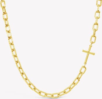 18k generously gold-plated sterling silver cross necklace seamlessly paired with a mini paperclip style fully adjustable chain. 18.9in (48cm). Convey your faith with our Mini Chain Breaker Necklace. Inspired by Galatians 5:1. The epitome of elegance and sentiment. The mini paperclip links transition seamlessly into the classic Rizen Cross pendant. An artful testament of our freedom in Christ.