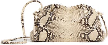 Snakeskin-embossed Italian calfskin is ruched and gathered to create this puffy, cloudlike clutch with a removable, adjustable crossbody strap that makes it easy to carry at events and everyday outings.
