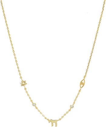 Mini CZ Bezel Jewish Charm Necklace