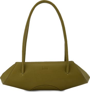 Supple leather in a richly pebbled finish shapes a sculptural baguette bag suspended from slender shoulder straps for comfortable wear.