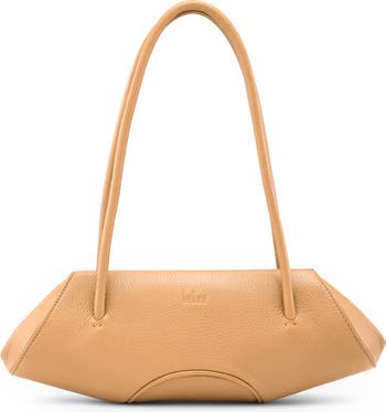 Supple leather in a richly pebbled finish shapes a sculptural baguette bag suspended from slender shoulder straps for comfortable wear.