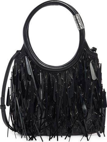 Hand-beaded fringe and swingy sequins catch the light as you make your way through the party in this luxe mini tote.