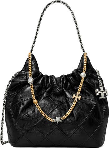 Signature logo hardware interspersed with contrasting stars brings metallic shine to a distressed lambskin-leather hobo bag perfect for storing your daily essentials.