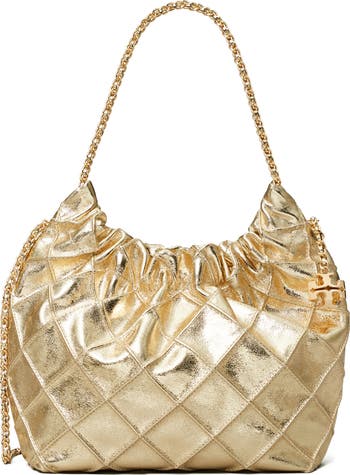A textured diamond pattern brings stunning dimension to a sized-down hobo bag shaped from lustrous metallic leather and featuring an optional chain crossbody strap for hands-free wear.