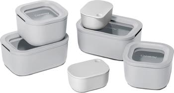 Keep food fresh and reduce your use of microplastics with these stylish storage containers made of nonstick, stain-resistant ceramic-coated glass. The sealed lids feature Air Release Technology to extend the freshness of your food and block out odors and pests. The magnetic storage organizer keeps everything easy to find and your cabinet clutter-free.