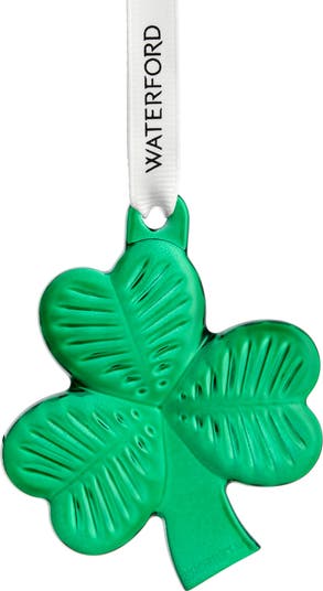 Bring the magic of the holiday season into your or your loved one's home with this intricate shamrock ornament made from light-catching green crystal. The ornament is suspended from a branded ribbon.