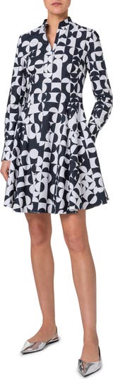 A grid of dots in eclipse mesmerizingly patterns this shirtdress cut in a swingy silhouette (achieved through circular seams) from crisp cotton poplin.