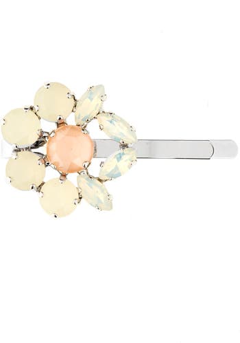 Imbue your ensemble with Simone's signature baroque whimsy with this floral hair clip featuring an apricot-tinted crystal haloed by marquise-cut stones and creamy faux pearls.