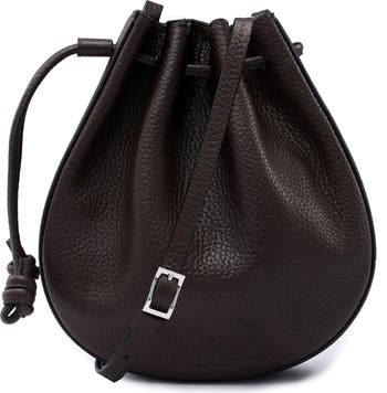 A topline drawcord closure and richly pebbled leather create textural intrigue on a scaled-down saddle bag suspended from an adjustable crossbody strap.