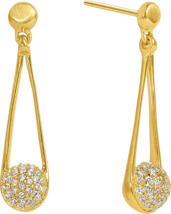 Orbs prong-set with white topaz pavé give cool shine and radiant sparkle to drop earrings warmed with 22-karat-gold plating.
